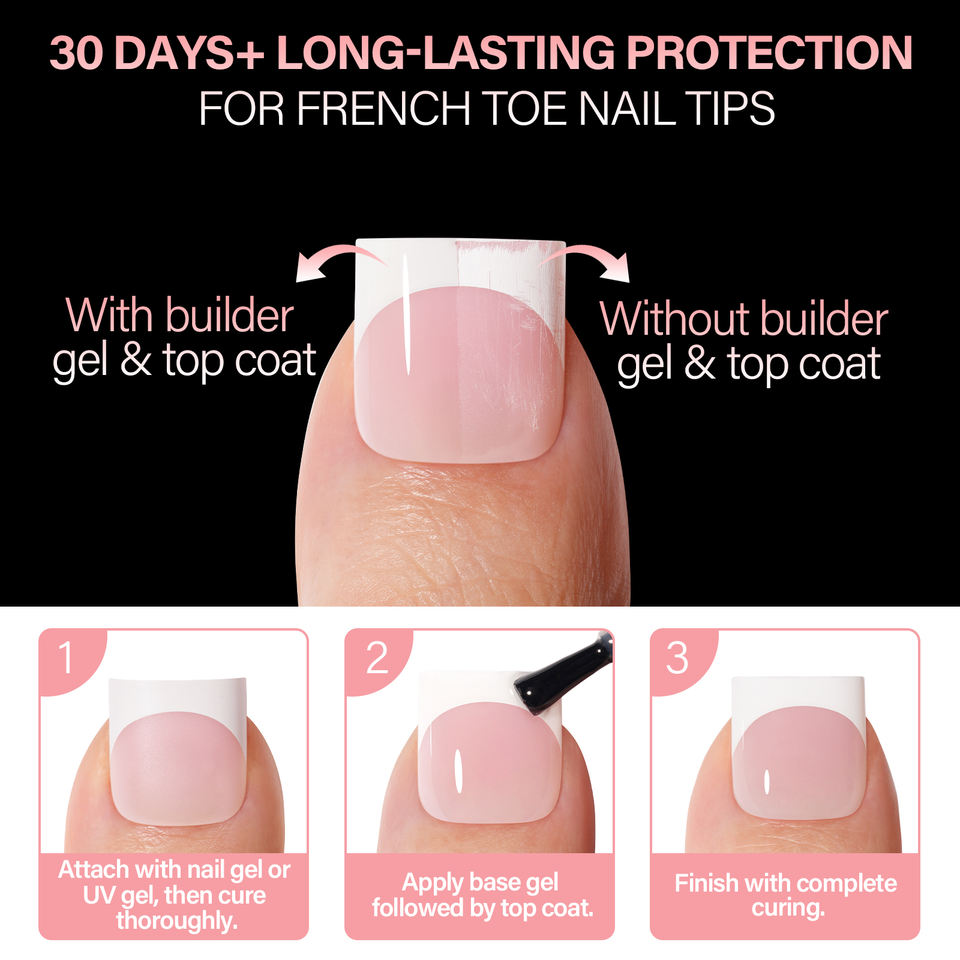 Puntas de Uñas Francesas Reutilizables para Pedicura - 150 Uñas Postizas Blancas Francesas, Fáciles de Aplicar, Uñas Acrílicas a Presión