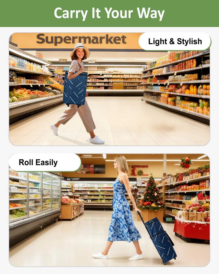 Bolsa de Compras Reutilizable con Cierre, Asas y Patrones Personalizados, Plegable, con Ruedas