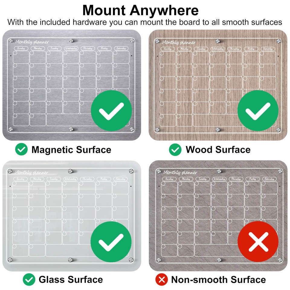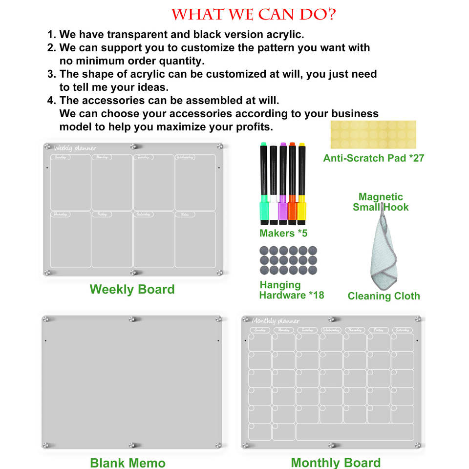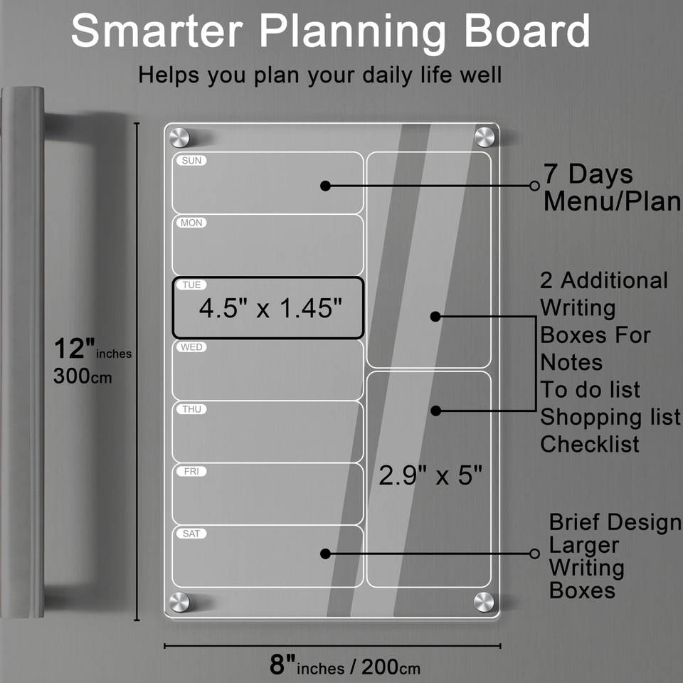 Calendario Acrílico Magnético Reutilizable Personalizado, Pizarra de Borrado en Seco con Tablero de Notas para Refrigerador