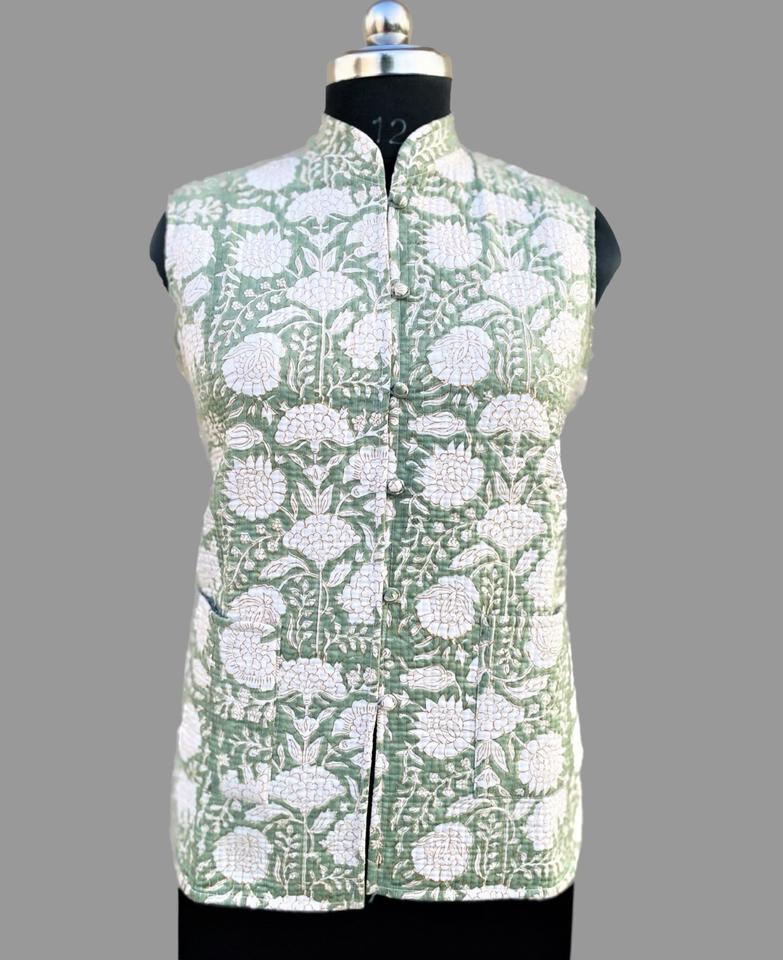 Chaqueta reversible acolchada de algodón con estampado de bloques para mujer, elegante chaqueta reversible floral azul 100% algodón, ropa de invierno de manga larga