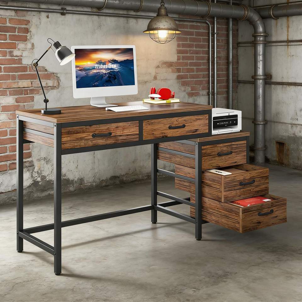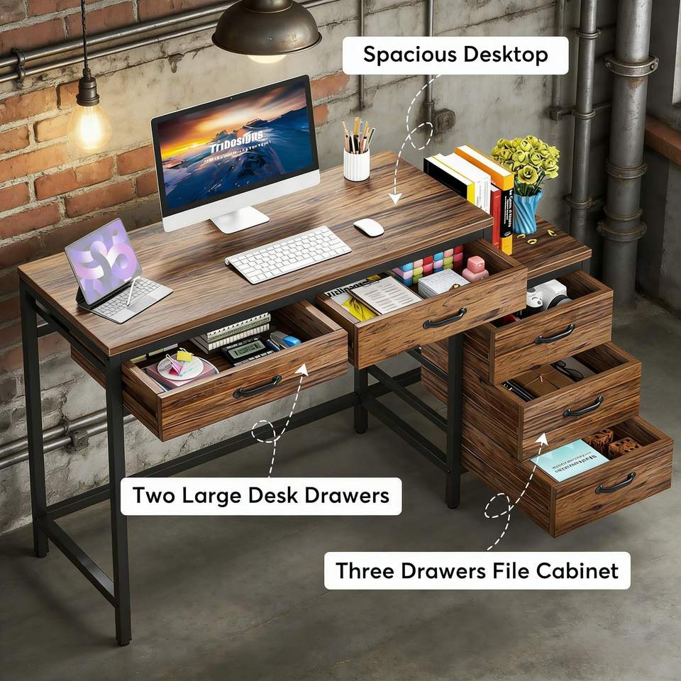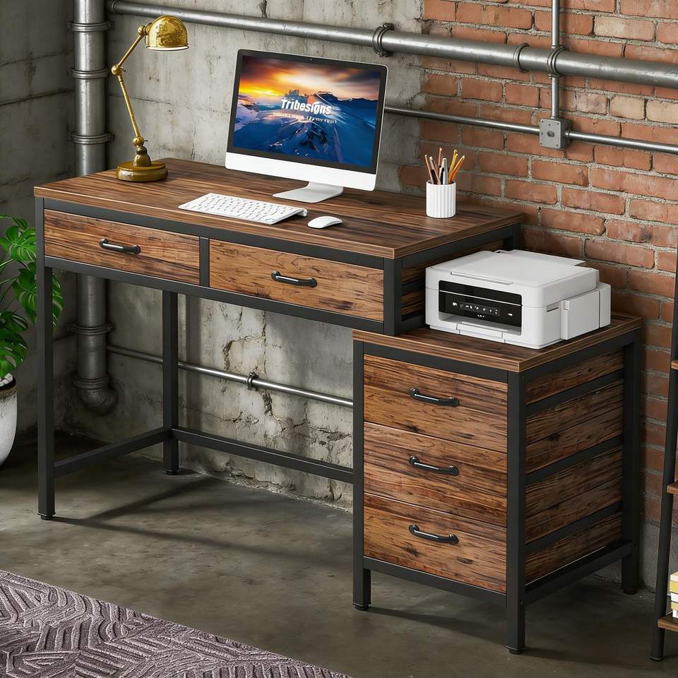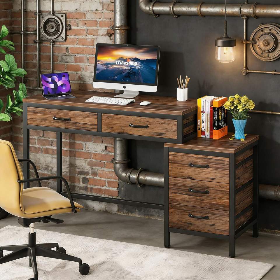Escritorio de Computadora con Cajonera Reversible y Mesa de Estudio/Escritura, Duradero y Práctico