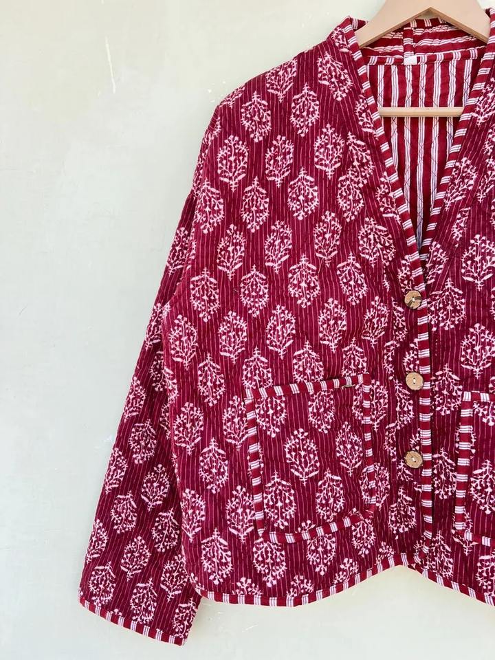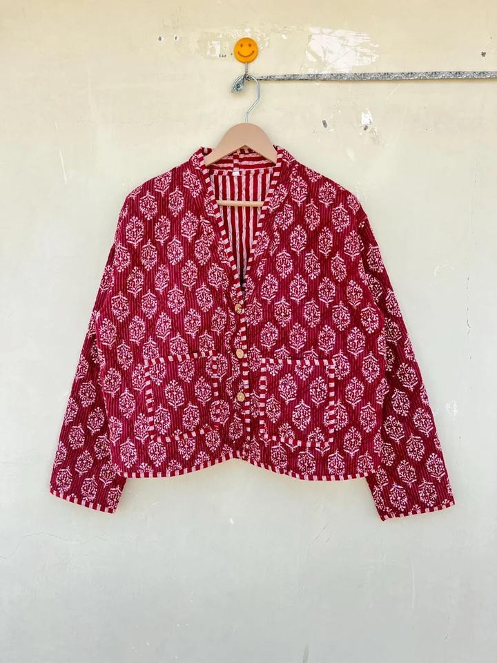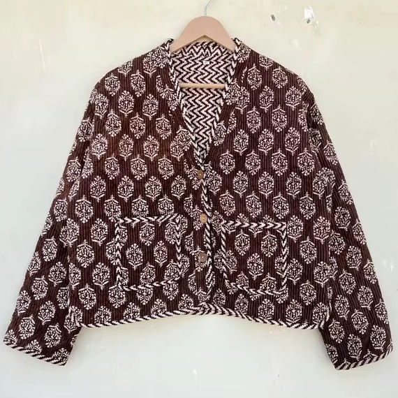 Chaqueta acolchada Kantha Reversible, abrigo bohemio de algodón hecho a mano para mujer, prendas de vestir exteriores florales, regalo de Navidad para Amigos de la familia