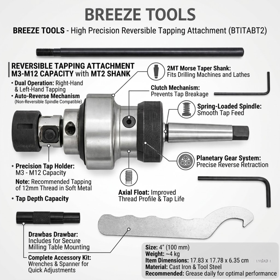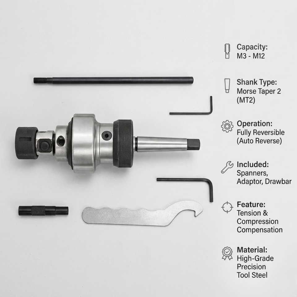 Accesorio de Roscado Reversible | M3-M12 MT2 Shank High | Portaherramientas de Precisión para Máquina Perforadora | Kit de Herramientas Industriales para Torno