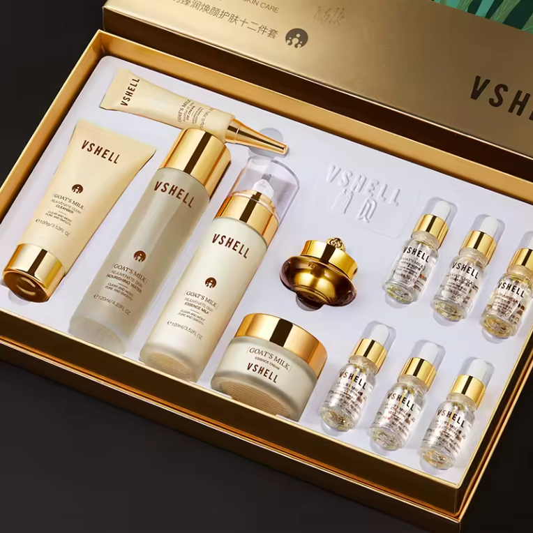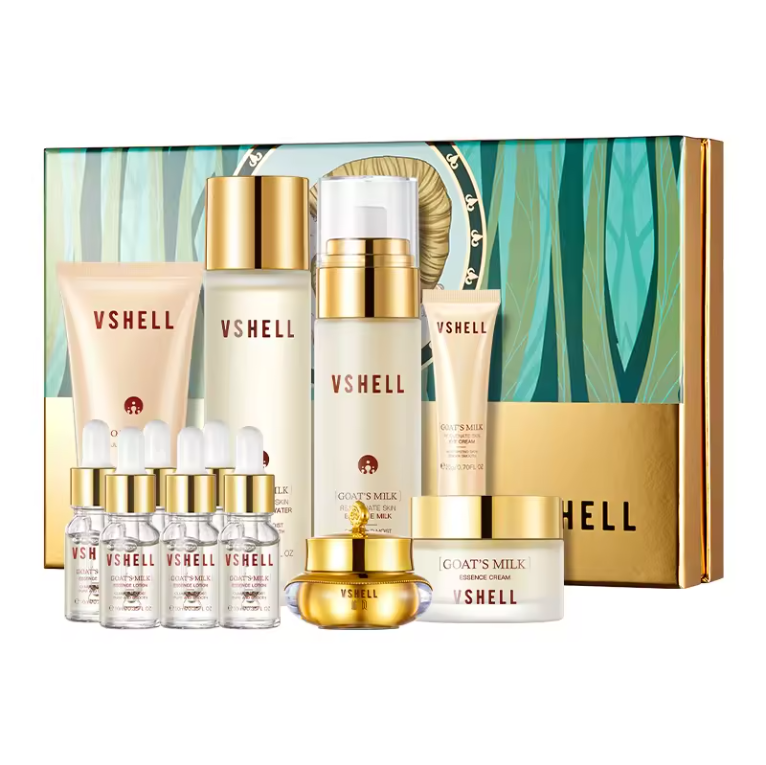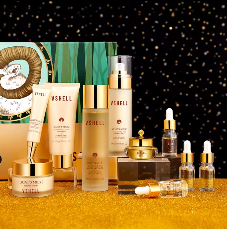Set de Regalo de Belleza Facial Revitalizante Kit de Cuidado de la Piel con Leche de Cabra Antienvejecimiento Hidratante Diario Iluminador para Piel Seca