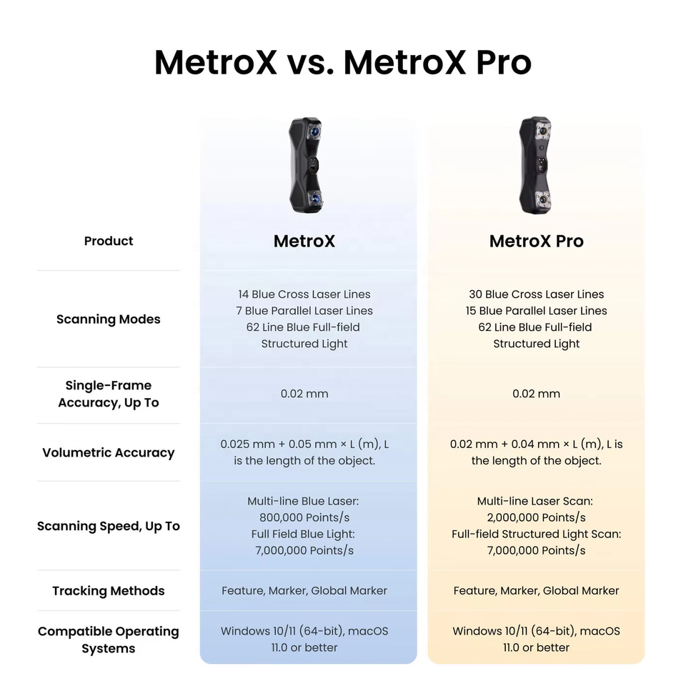 Escáner 3D Rápido Revopoint MetroX Pro con Línea Láser Azul y Luz Estructurada de Campo Completo