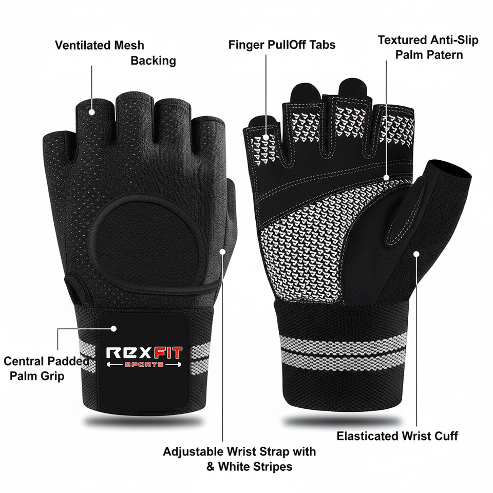 Guantes Deportivos Rexfit para Hombre, para Levantamiento de Pesas, Protección Completa de la Palma | Agarre Ultra Transpirable para Entrenamiento en Gimnasio