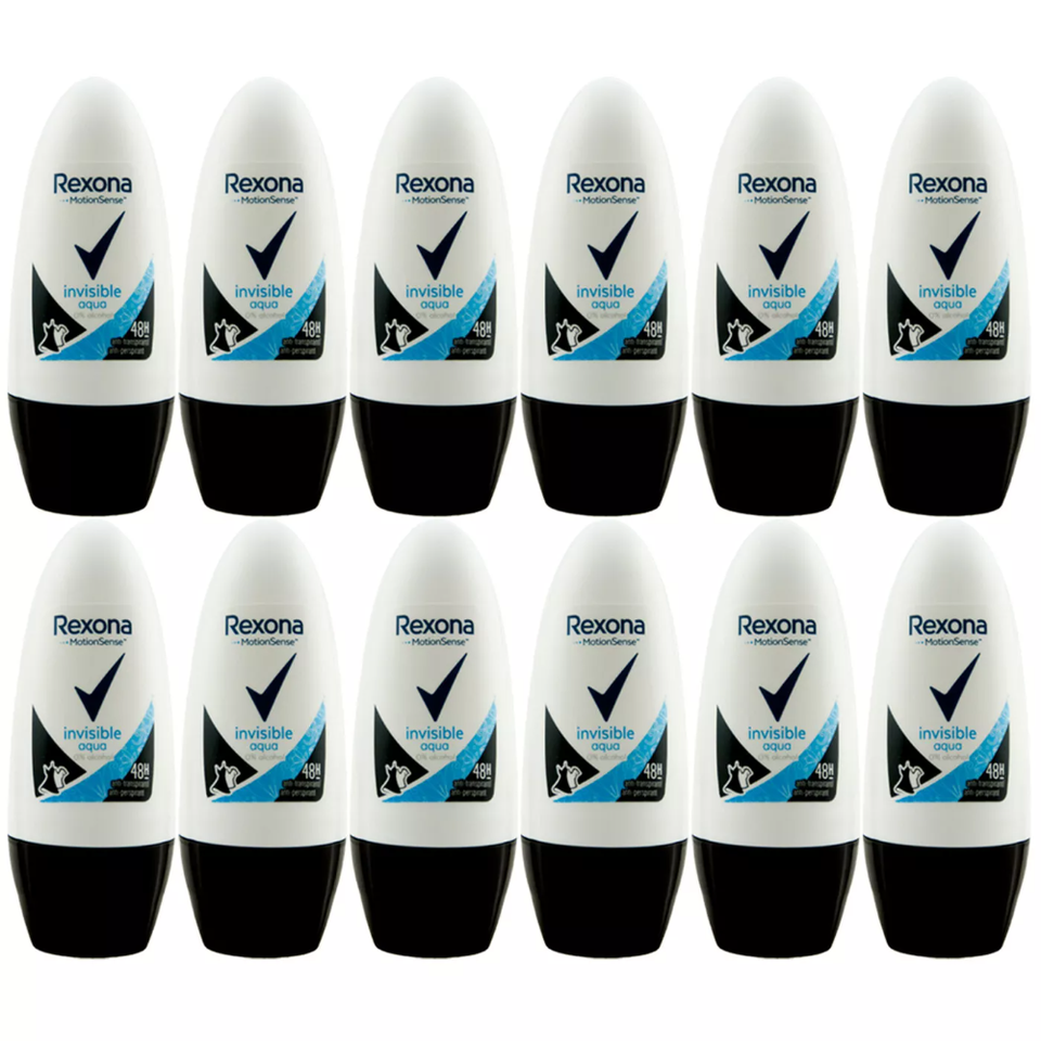 Rexona Desodorante INVISIBLE AQUA 12X50ml Roll on Desodorante 48H Protección 0% Alcohol