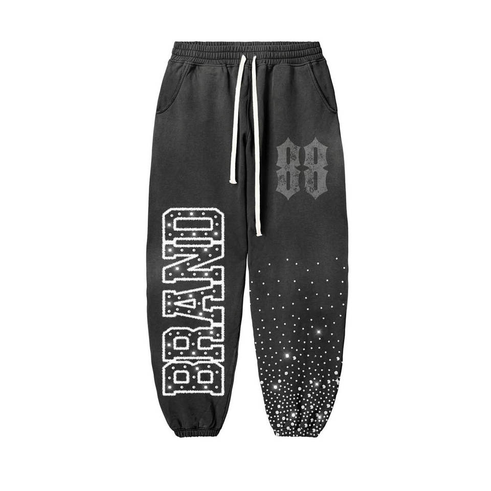 Conjunto de 2 Piezas con Capucha y Pantalones Apilados con Lavado Ácido y Pedrería, Diseño Moderno y a la Moda, Estampado Desteñido por el Sol, Traje de Pantalones Deportivos con Capucha