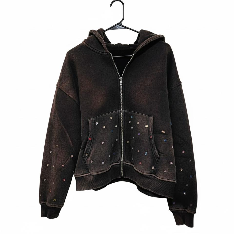 Sudadera con Capucha Estilo Vintage, Lavado Ácido con Pedrería, Logotipo Personalizado, Felpa de Algodón Grueso, Sudadera Informal para Hombre