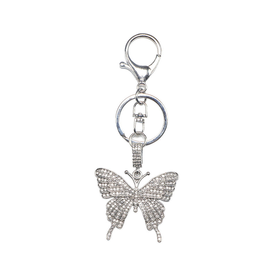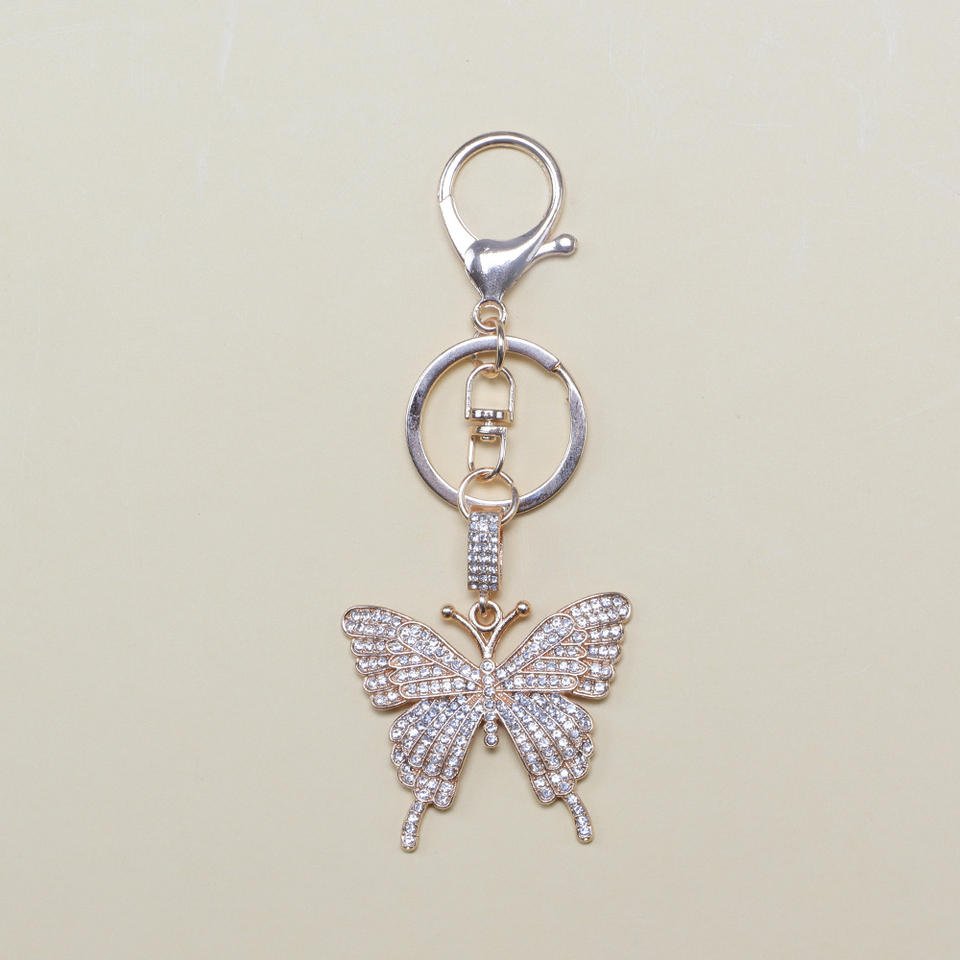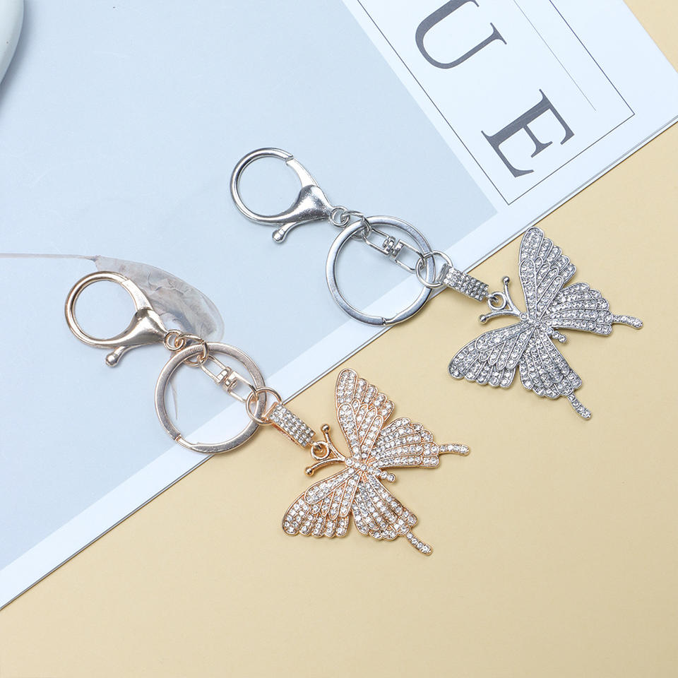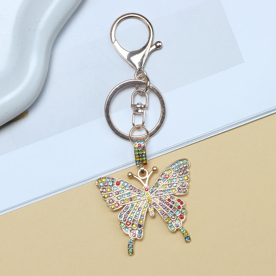 Llavero de Aleación con Mariposa de Diamantes de Imitación, Llavero Mosquetón Colorido Dorado y Blanco, Colgante Decorativo Portátil, Regalos Festivos