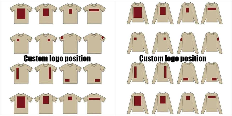 Posición del logotipo:Frente, Espalda, Manga izquierda, Manga derecha, Dobladillo inferior, Cuello trasero