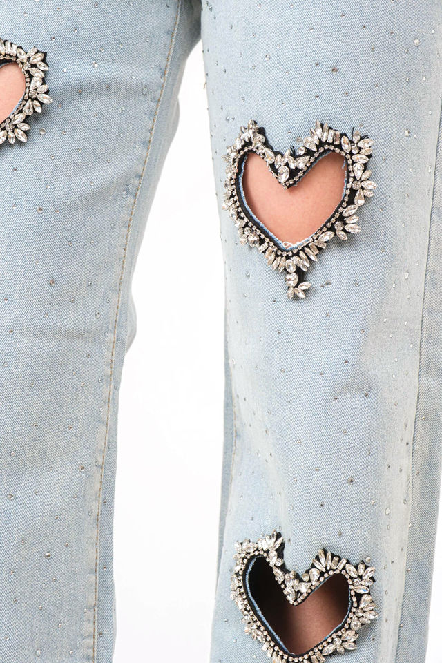 Pantalones vaqueros medianos con adorno de corazón de diamantes de imitación transpirables ecológicos de alta calidad diseño personalizado moda Jeans Street