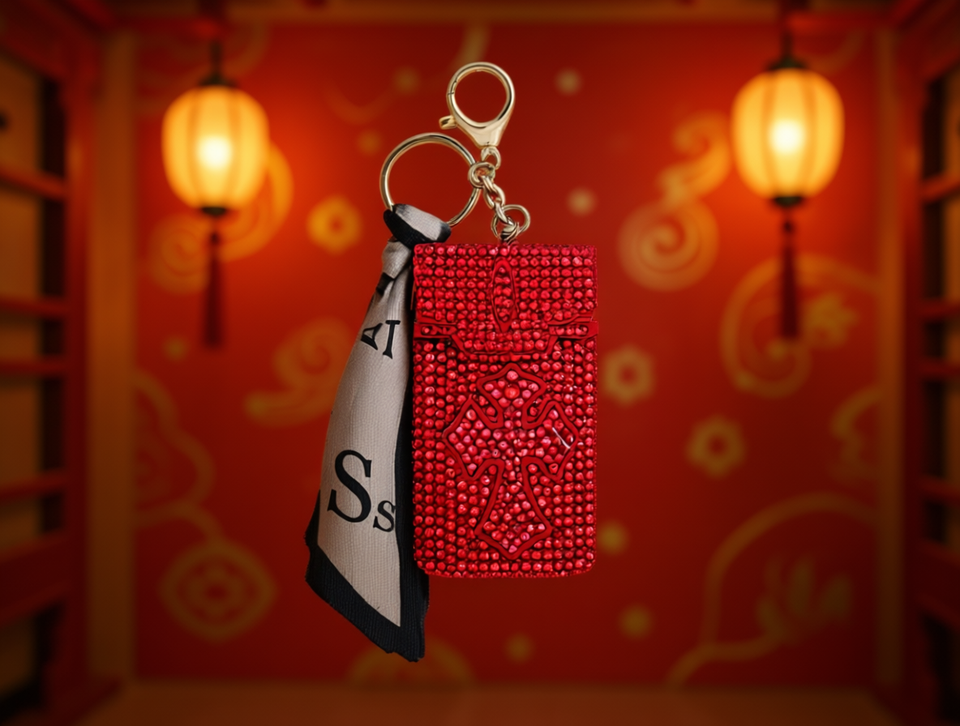 Llavero de malla 3D con patrón de cruz de diamantes de imitación rojos, parte trasera plana, termoadhesivo, accesorio para bolso