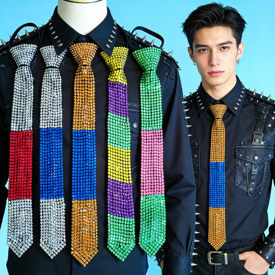 Corbatas con pedrería, diseño de bloques de color, de rayón, decorativas, para hombre y mujer, para uso casual.