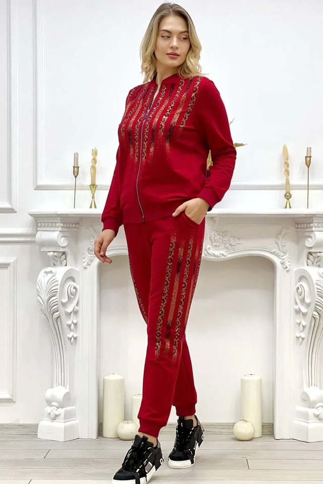 Chándal de Diamantes de Imitación para Mujer, Chaqueta con Cremallera Bordada con Diamantes de Imitación de Leopardo, Pantalones de Chándal con Cristales, Conjuntos de 2 Piezas