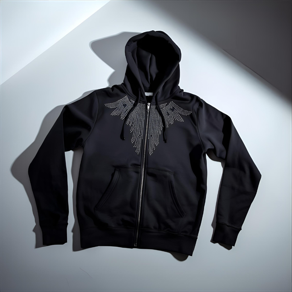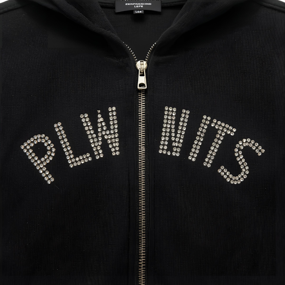 Sudaderas con cremallera de diamantes de imitación, sudadera con cremallera de cristal personalizada con estampado de logotipo y diseño personalizado OEM/ODM, Bienvenido