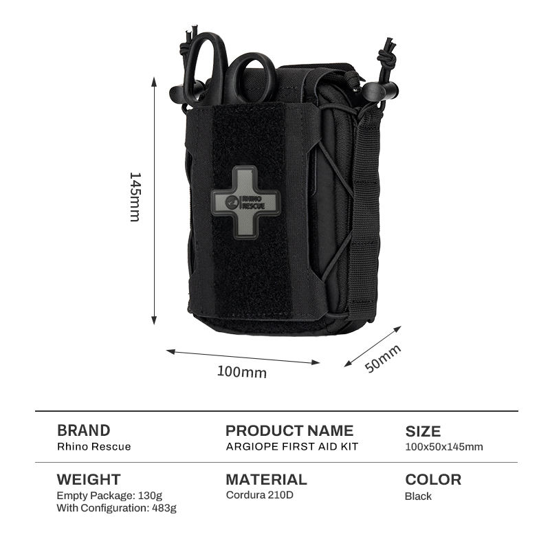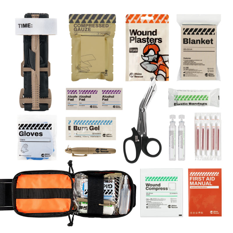 Kit de Supervivencia Rhino Rescue Mini Resistente, Cordura 210D, Kit de Primeros Auxilios Portátil para Emergencias al Aire Libre con Suministros Médicos