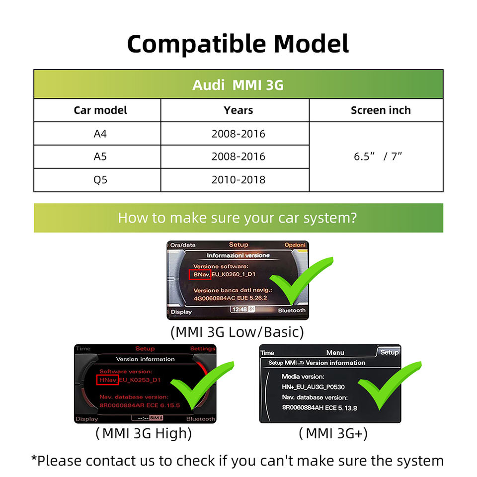 Sistema de apoyo:Para Audi MMI 3G