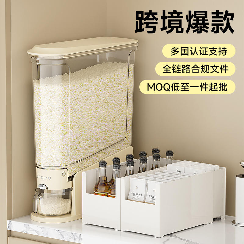 Contenedor de Arroz de 20 kg con Dispensador a Presión, Hermético, para Almacenamiento en la Cocina, Forma Rectangular, Tapa Sellada
