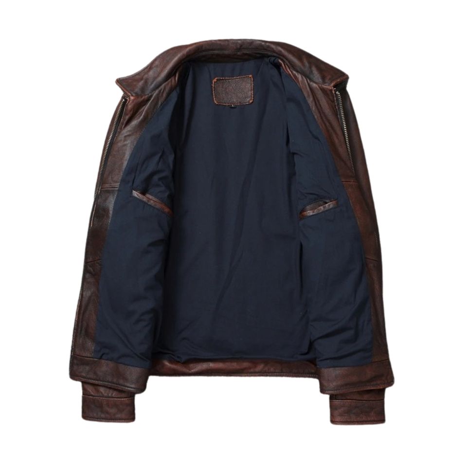 Chaqueta Bomber Clásica de Cuero Marrón Oscuro, Estilo Nuevo, Cuero Vacuno, Invierno, Impermeable, Transpirable, Cuello Camisero, Estilo Militar