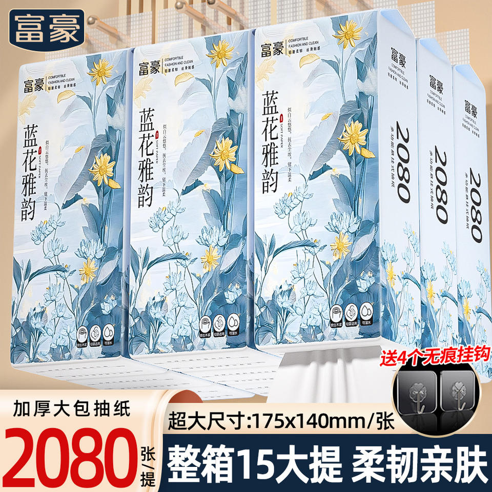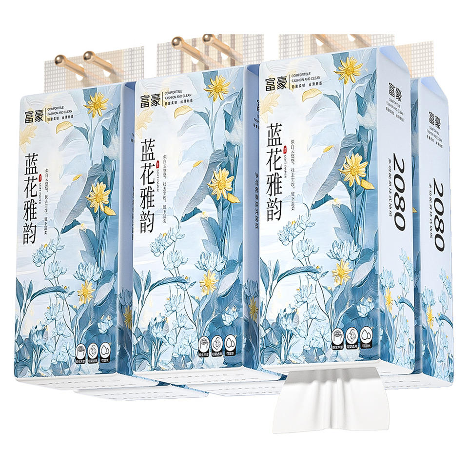 Pañuelos Faciales Rich Man Blue Flower Rhyme, Caja de 15 Unidades, Servilletas de Papel Absorbentes para el Hogar