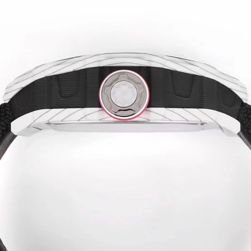 Reloj Mecánico de Lujo para Hombre, Modelo Rm Skeleton, Caja de Fibra de Carbono, Movimiento Visible, Correa de Nylon Negra, Deportivo y Elegante