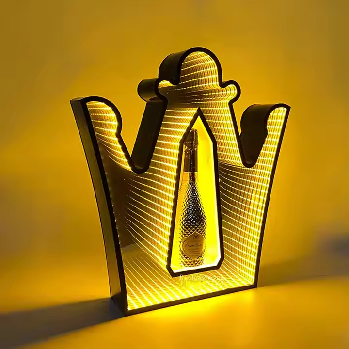 Richshining-Expositor de botellas LED acrílico dorado personalizado, VIP para discoteca y bar, presentador, plástico duradero con logotipo (ODM/OEM)
