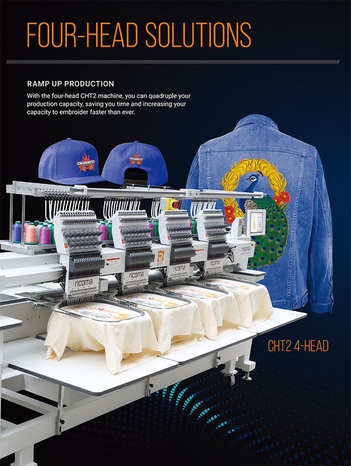 Máquina de Bordar Computarizada Ricoma CHT2 de 6 Cabezales para Gorras y Ropa de Grado Industrial