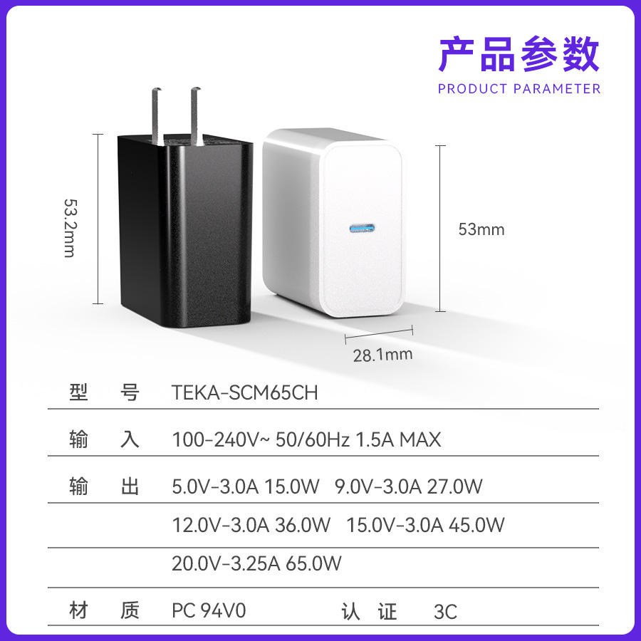 Cargador PD estándar de EE. UU. de 65 W