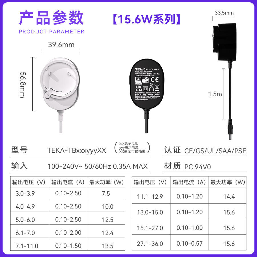 Adaptador de corriente de 15,6 W