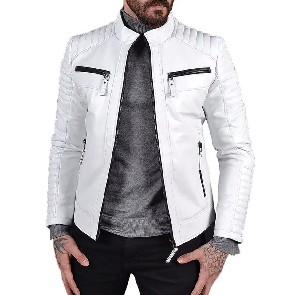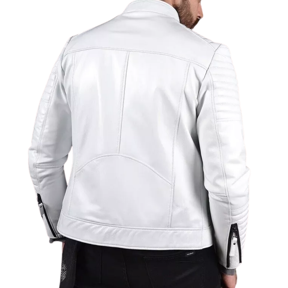 Chaqueta de moto de cuero genuino para jinetes con chaqueta de moto blanca de cuero de pista protegida CE blindada para hombres