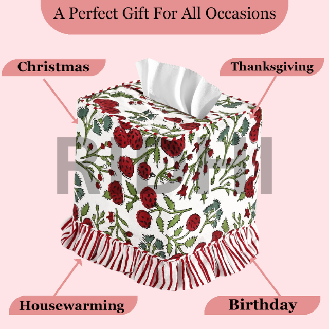 Funda para Caja de Pañuelos de Algodón Hecha a Mano, Color Rojo Granate, con Estampado de Bloques, Porta Servilletas de Tela, Decoración para el Hogar, Regalo, Uso en el Dormitorio, Estilo Clásico