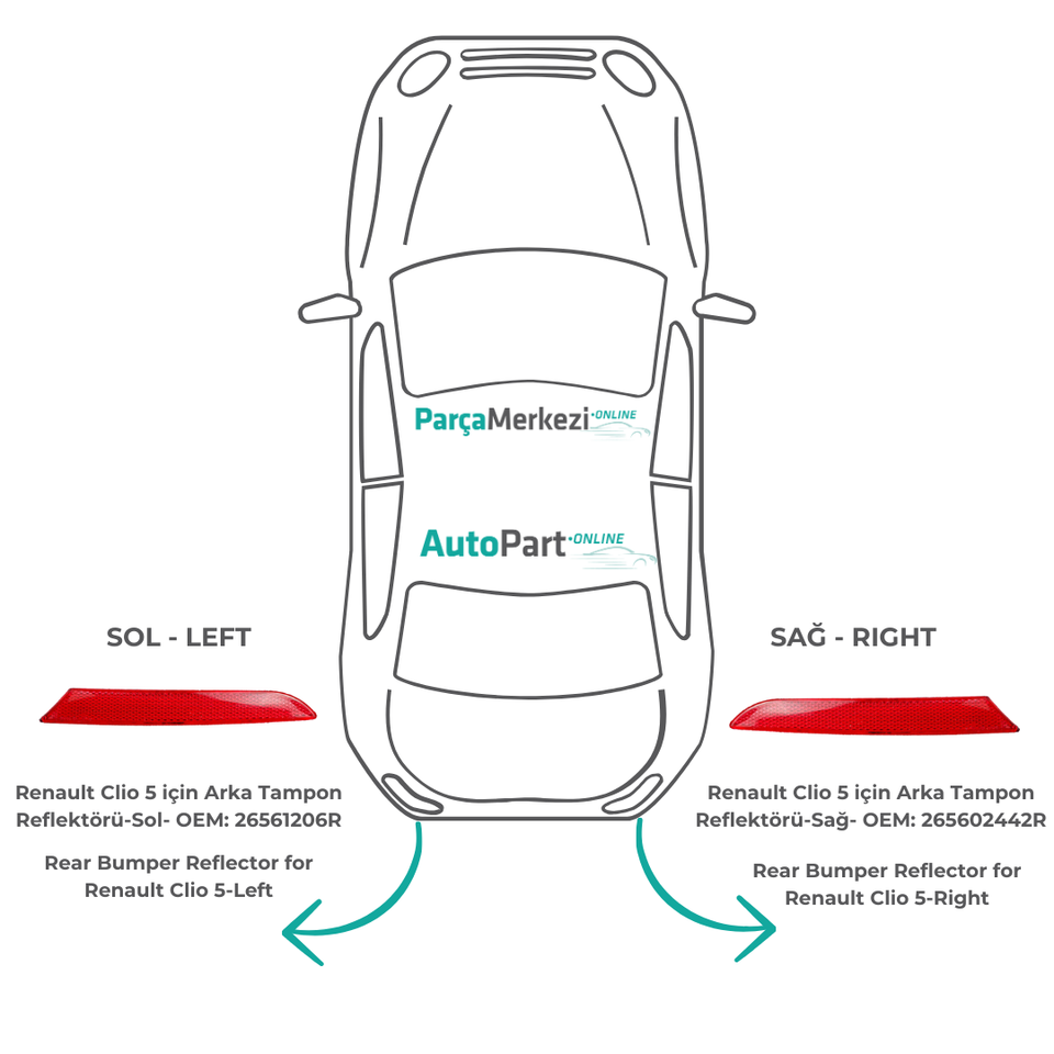 Juego de reflectores de parachoques trasero derecho-izquierdo para Renault Clio 5 (envío desde el fabricante de Turquía) Código de producto: FD113706