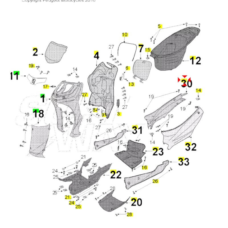 Carenado Trasero Derecho para Peugeot Tweet Modelo 802003V3 Hecho de Plástico Resistente