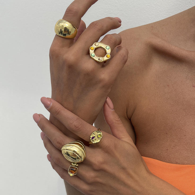 Conjunto de anillos Anillos de aleación abiertos ajustables geométricos para mujeres y hombres Anillos apilables chapados en oro Joyería de moda
