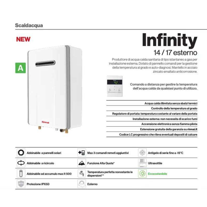 Calentador de Agua a Gas para Exteriores Rinnai Infinity 14e de Flujo Forzado, 14 Litros, ErP Metano