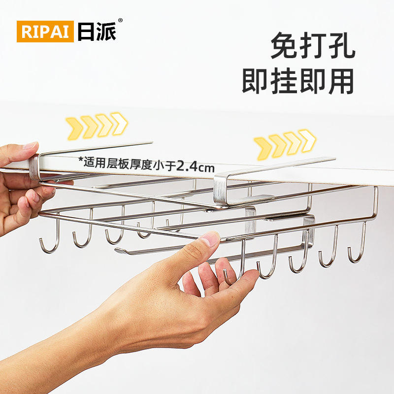 Estante de cocina de acero inoxidable Ripai con ganchos para tazas y utensilios, no requiere perforación, organizador de almacenamiento multifunción