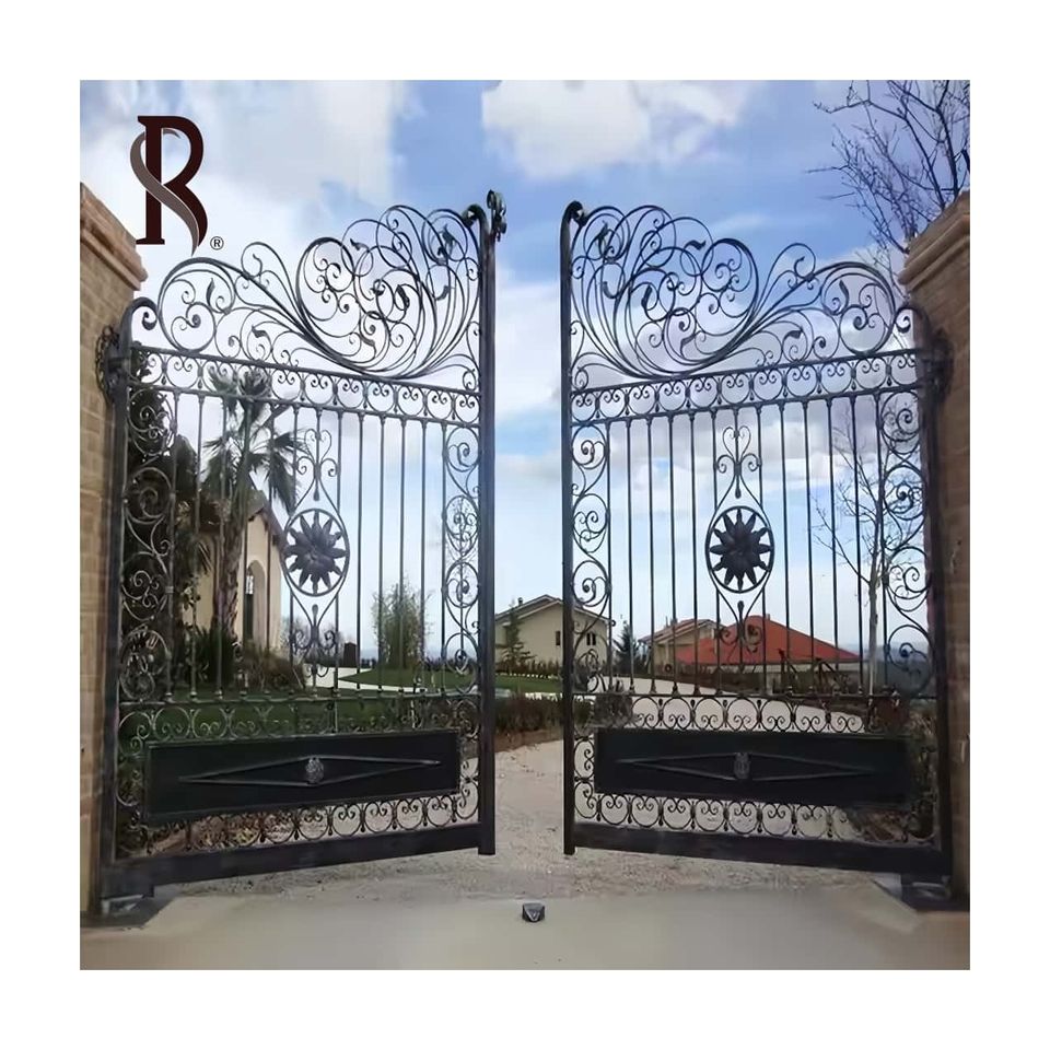 Rising Custom Windproof Modern Metal Grill Diseño de doble puerta Puerta delantera esmaltada Precio forjado de hierro con precio de fábrica