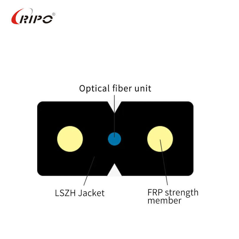 Cable de fibra óptica de modo único para interiores FTTH con certificación RoHS, tipo arco G.657A2, aplicación industrial insensible a la curvatura, cobre PVC