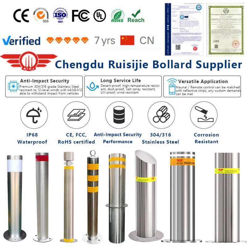 Columna Metálica de Seguridad Vial, Poste de Barrera Reflectante de Advertencia Fija, Bolardo de Acero Inoxidable para Estacionamiento