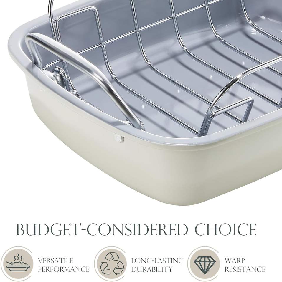 Sartén para asar con estante, asador de pollo grande de 17x14 pulgadas para horno, manijas más anchas, construcción resistente adecuada para 24LB