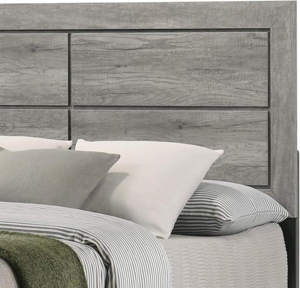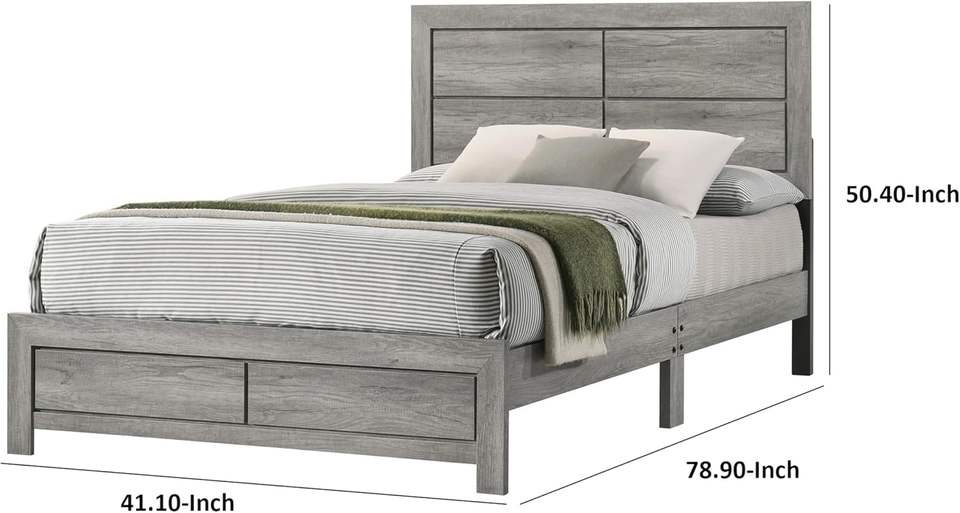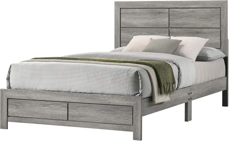 Cama doble de madera maciza Robin de diseño tradicional con base de perfil bajo Acabado de madera gris rústico