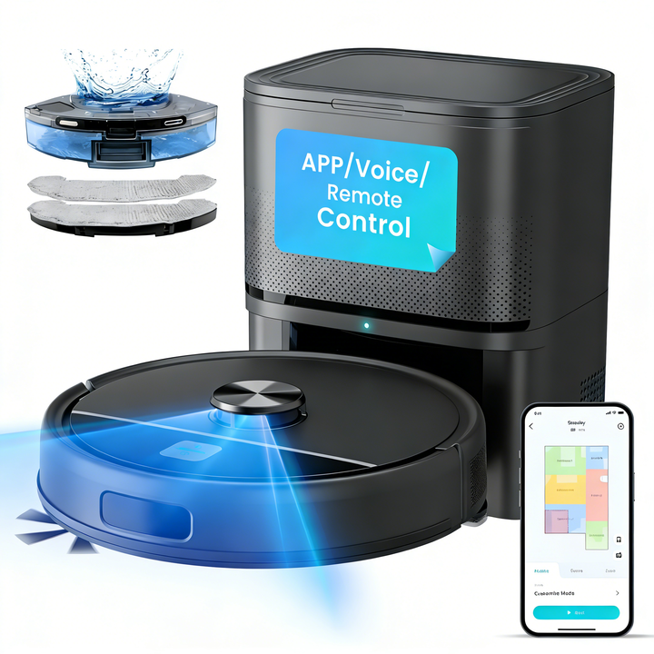 Robot Aspirador con Filtro HEPA, Mopa Automática Húmeda/Seca, Motor sin Escobillas, Succión de 3000Pa, Navegación LDS, Control por Aplicación, Funciona con Batería
