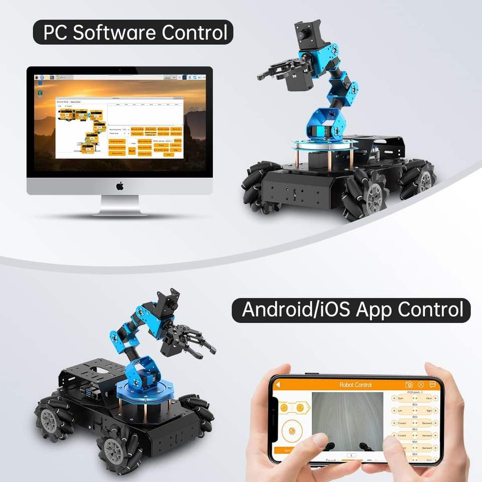 Brazo Robótico con Raspberry Pi, Programación de Código Abierto, Visión Artificial FPV, Kit de Robot Inteligente de 6DOF/Ejes, Chasis Grande con Ruedas Mecanum 4WD