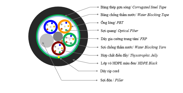 Robusto Duradero 6 8 12 16 24 36 48 96 Núcleos Premium Fácil Aplicación Cableado de Cable de conducto metálico Hecho en Vietnam para uso de energía