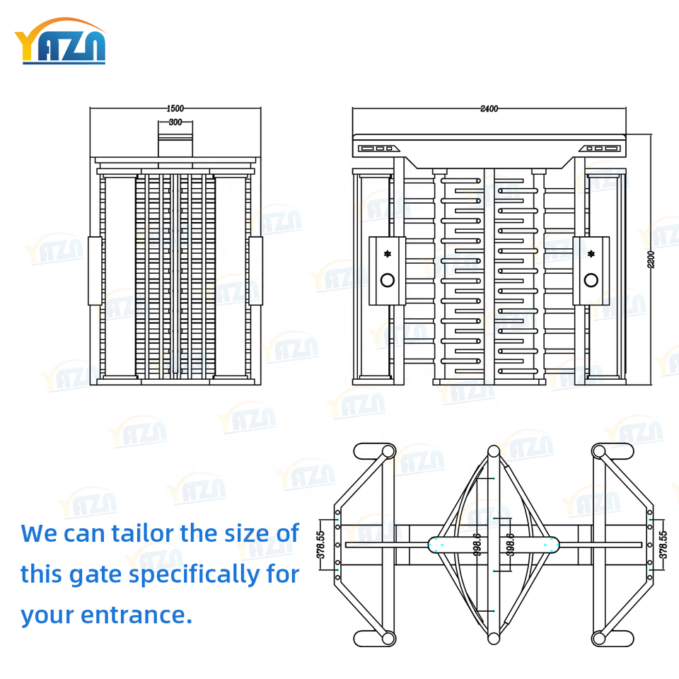 Torniquete Robusto de Altura Completa con Acceso Biométrico Integrado, Modelo 02s, Acceso Rápido, Sistema de Seguridad de 2400 mm para Oficinas, Parques y Centros