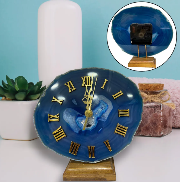Reloj de Mesa de Ágata Tallada en Cristal de Roca, Reloj Colgante de Ágata, Reloj de Rodajas de Piedra de Ágata para Decoración del Hogar