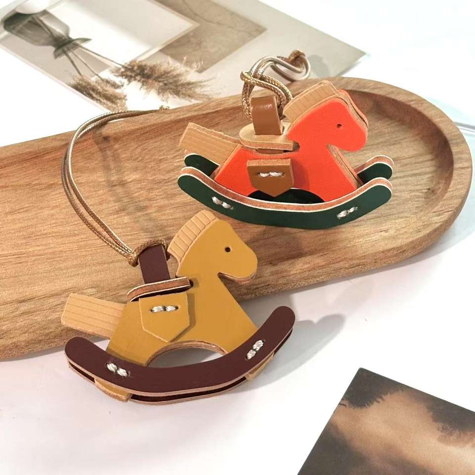 Llavero de Cuero con Forma de Caballo Mecedor, Bonito Colgante Decorativo para Bolsos y Coches de Mujer