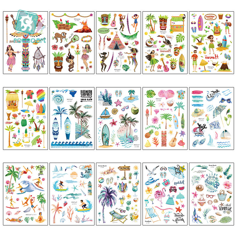 Rocooart-tatuaje temporal de la serie Hawaii, diseño de palmeras de coco, pegatina con patrón, Mini gallina mixta, fiesta nupcial