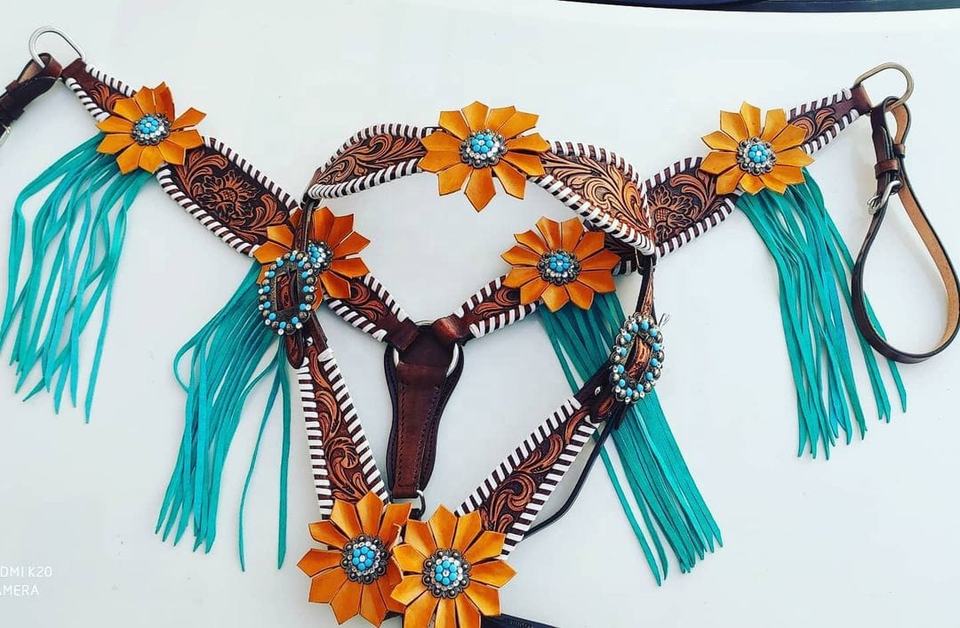 Conjunto de tachuelas de piel de vaca para Ranch Horse, cabeza de piel sintética con herramientas de mano, pelo indio, al mejor precio